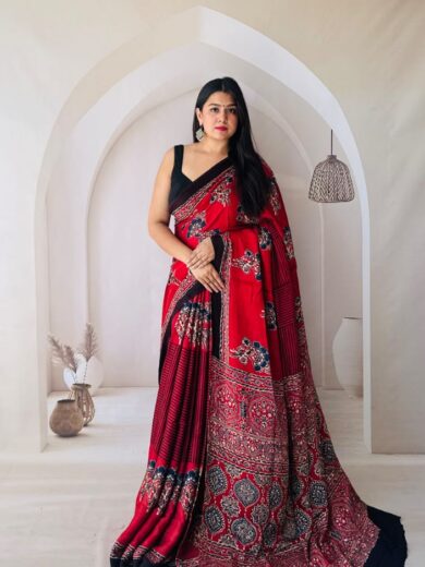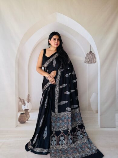 Pure Modal Silk Natural Ajrakh Sari